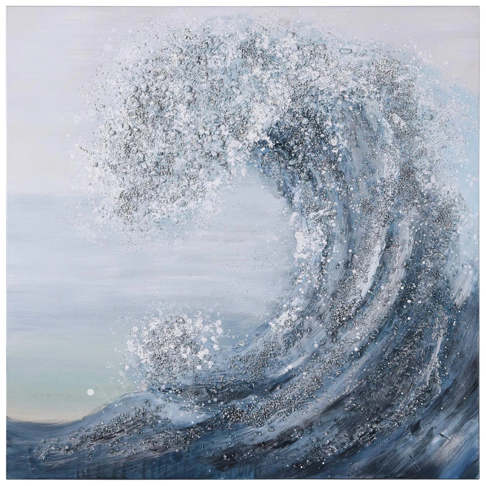 This painting captures the strength and beauty of the sea through the movement of a single wave. Each curve and texture is created to reflect the power and rhythm of the ocean bringing a sense of motion and freedom into any interior space. The artwork combines abstract design and soft marine colors inspired by the deep blue aesthetic of Blue Whale Gifts.